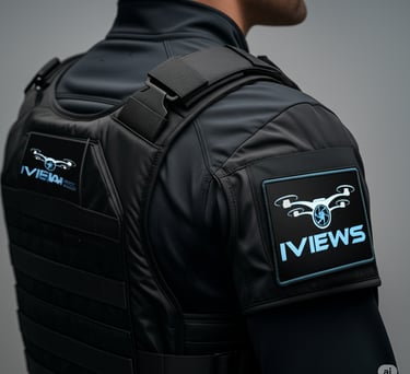 The IVIEWS logo combines a sleek, futuristic font with aerial-inspired visual cues. The symbol subtly integrates a drone rotor element and a wide-angle lens—a direct nod to the core of what IVIEWS delivers: